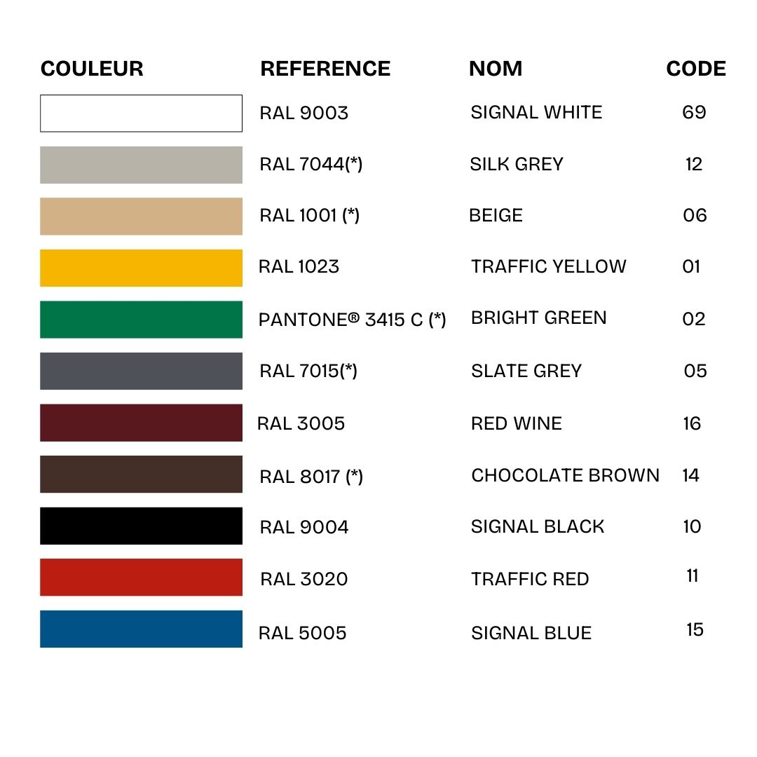 | Couleur: | Disponible en 11 coloris |